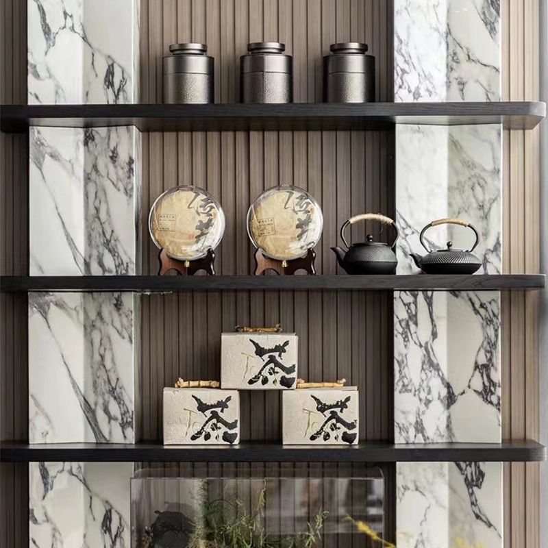トレンディなティールームの背景壁ソフト装飾デザインサイドキャビネットディスプレイスタンド中国風の小道具ティーケーキティーポットと装飾品