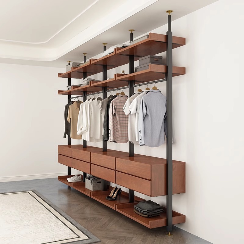 オープンワードローブ鉄製両面パーティションハンガートップキャビネット棚金属製床置き収納ラック
