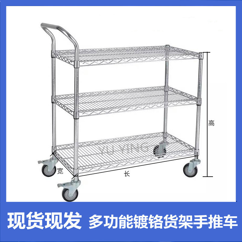 三層ステンレス鋼カラーシェルフクロームメッキハンドプッシュプルカート倉庫ワークショップターンオーバーカート可動電子商取引物流部門