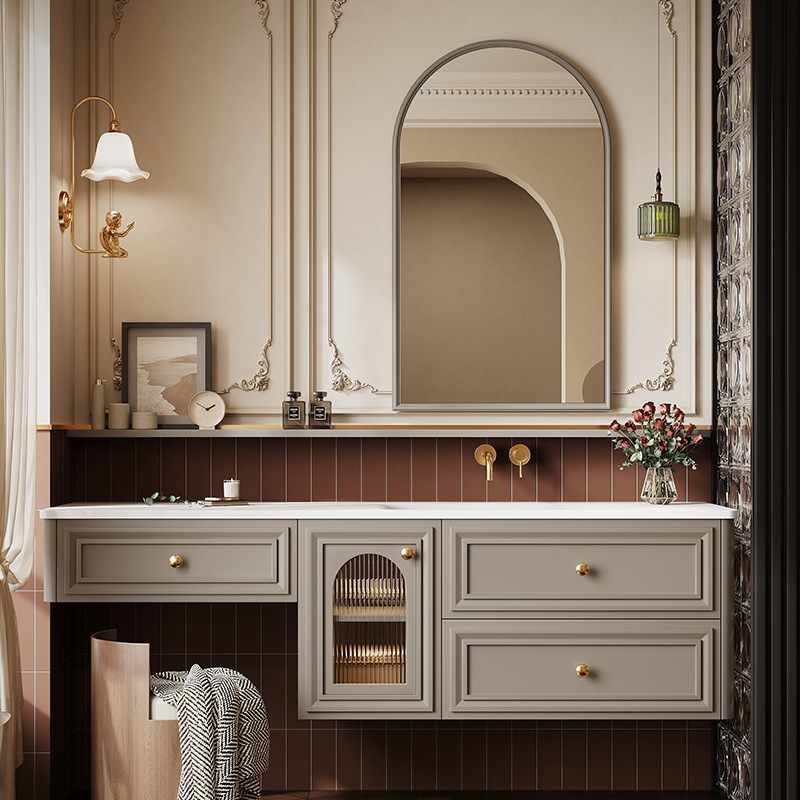 オークフレンチレトロドレッシングテーブル一体型バスルームキャビネット組み合わせバスルームシンク洗面台キャビネットカスタムメイド。