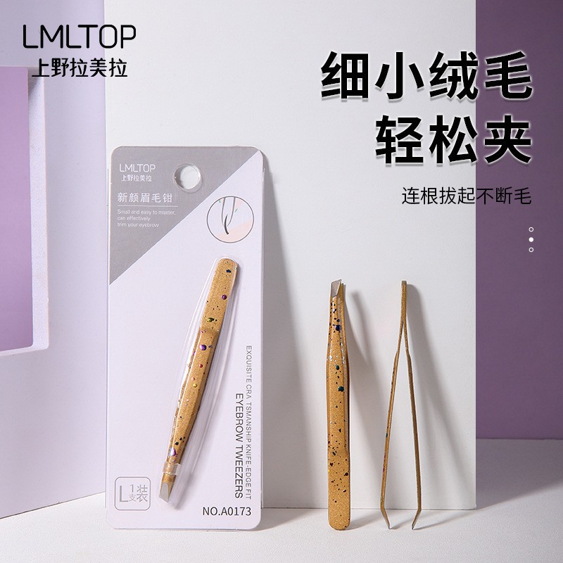 LMLTOP 斜め眉毛クリップステンレス鋼ゴールデン眉毛プライヤーつけまつげ補助ツールピンセット A0173