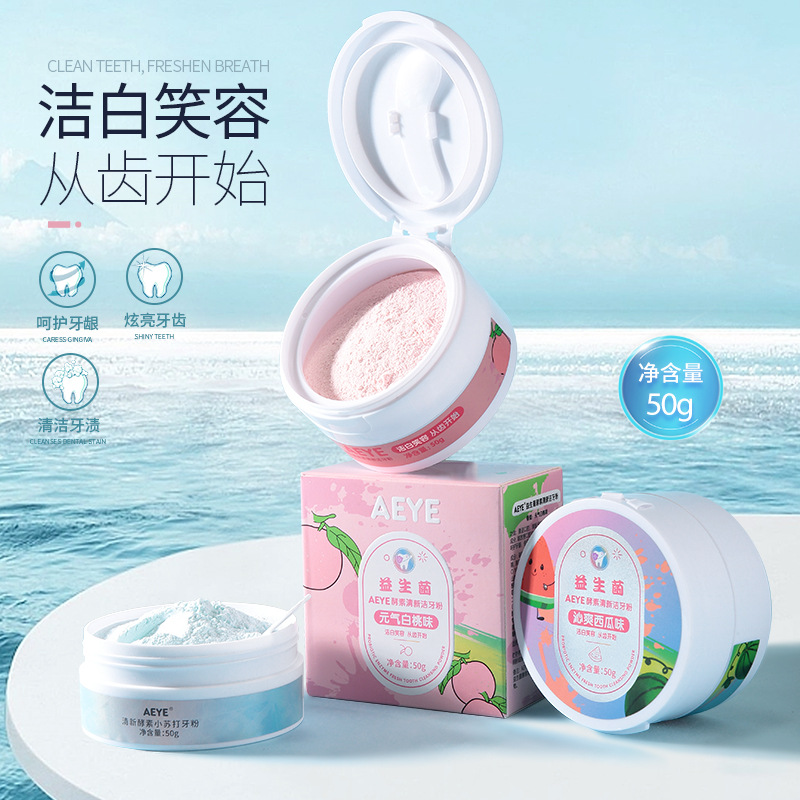 Aeye酵素の清潔な歯の粉の明るい白い真珠の歯の清潔な歯の粉は歯の垢の海の塩の歯の粉のメーカーに行きます。