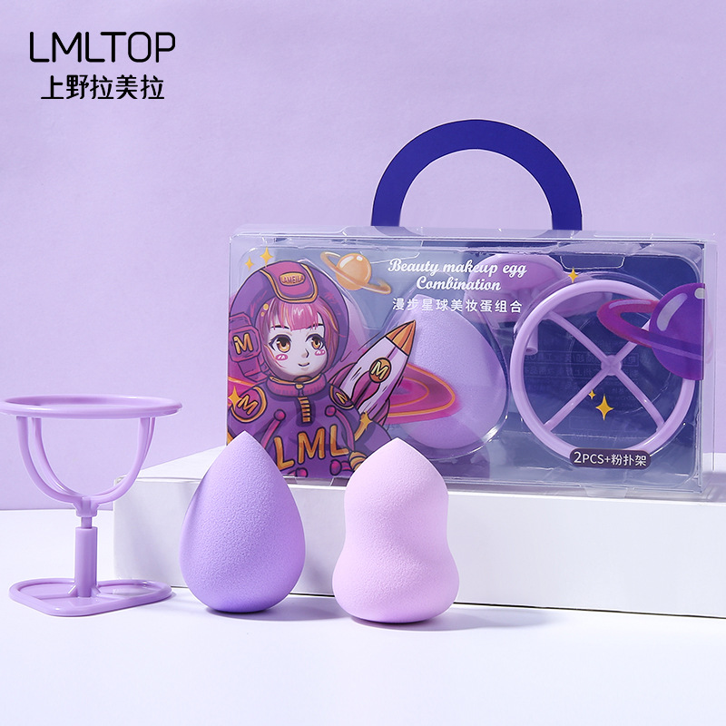 ラメラが星を散歩している2枚の泡が入っている大きな水滴パフひょうたん美化粧卵が収納棚a80224に送られている
