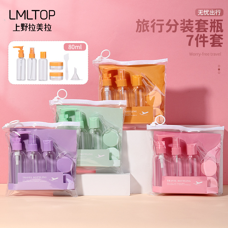 Lmltop 80ml旅行分注ボトル7点セットスプレーボトル圧瓶乳圧瓶空ボトルセットsy761
