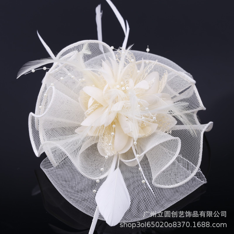 国境を越えた競馬祭のレトロなヘアアクセサリー、羽根飾り、花飾り、レース、ビーズ、手作りのネットヘアピン、ヘアバンド、両用