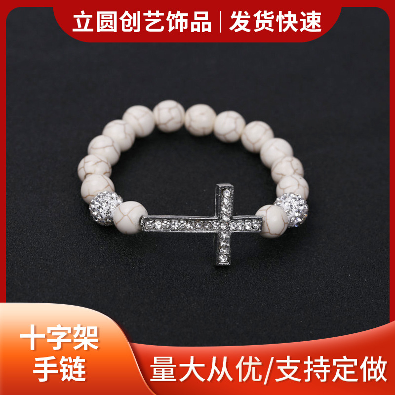 ダイヤモンドクロスブレスレット松石弾性ブレスレット冷淡風高級感個性手串小衆ファッションアクセサリー
