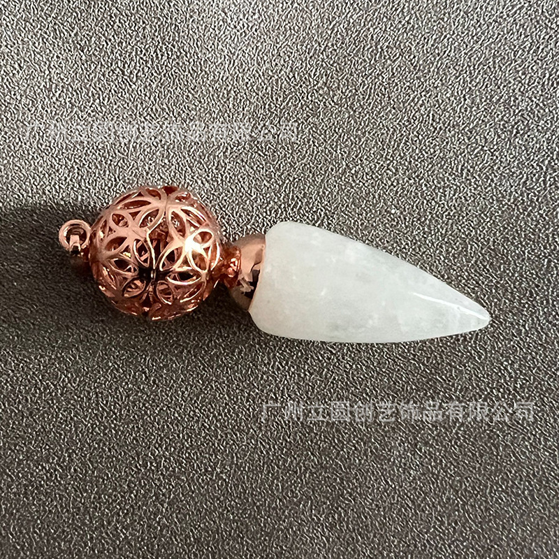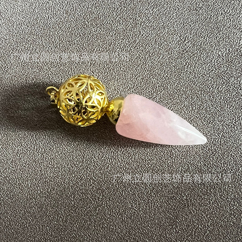 金色の透かし彫り花球水晶紫晶虎眼石円錐子弾頭ペンダントネックレスアマゾンソース卸売り
