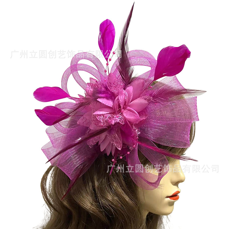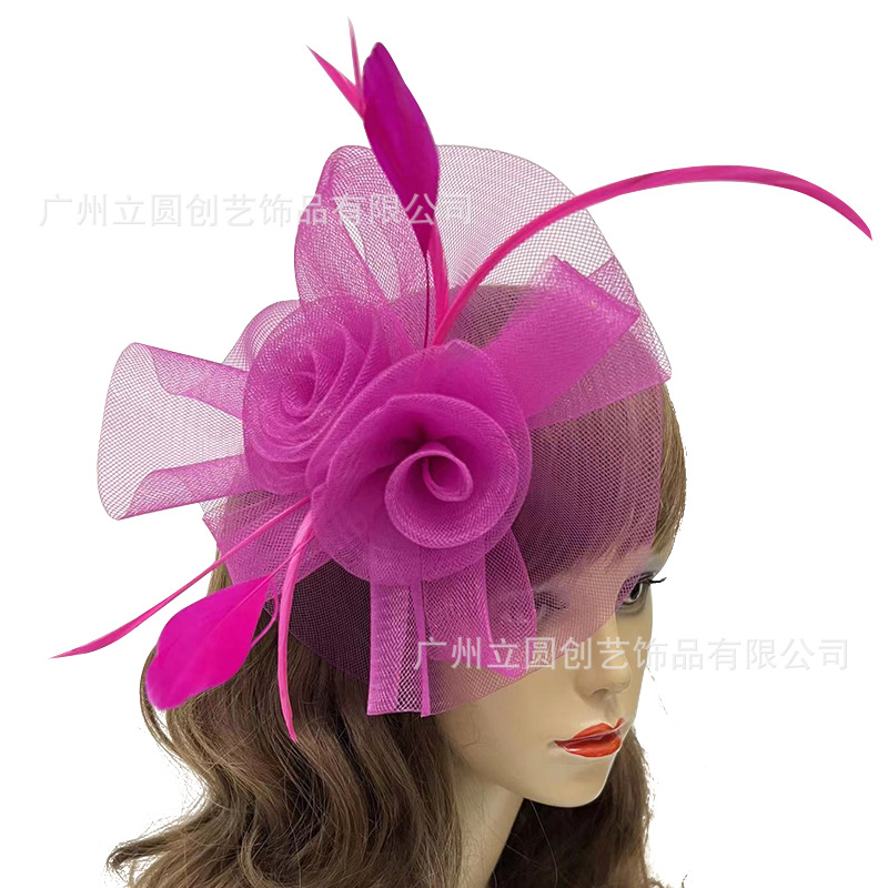 欧米のレトロな花嫁の舞踏会の髪飾りの羽のバラの赤いバラの髪のカチューシャの両用の髪飾り