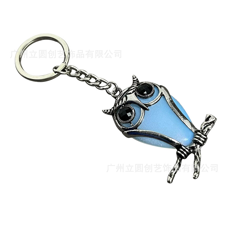 クロスボーダー新作アンティークシルバー天然水晶フクロウペンダントキーホルダー