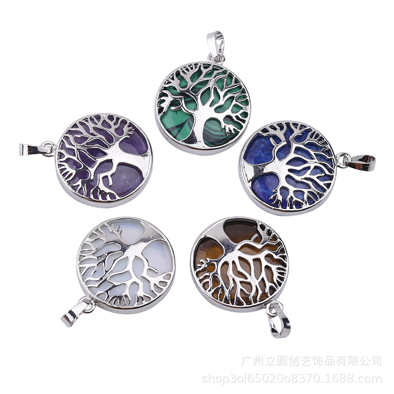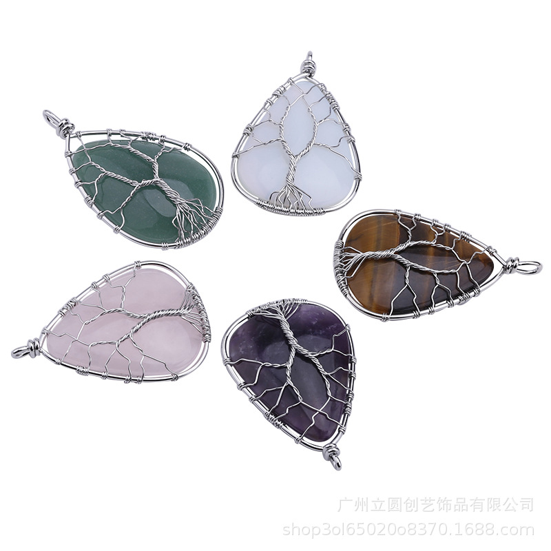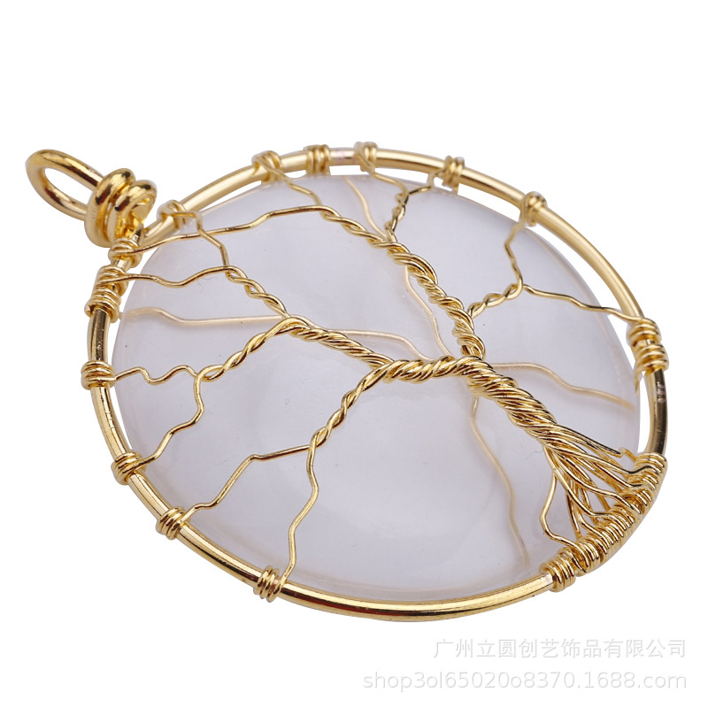 クロスボーダー新型シンプルファッション天然水晶巻線生命樹水滴円形ペンダント