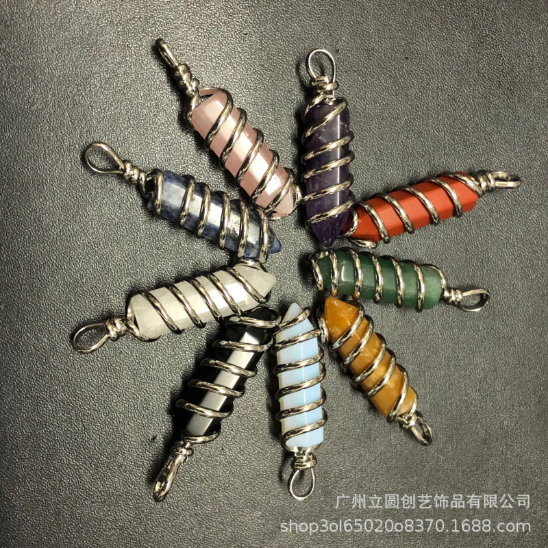 クロスボーダー新型天然水晶螺旋形天然水晶六角柱切断面ペンダントネックレスアクセサリー