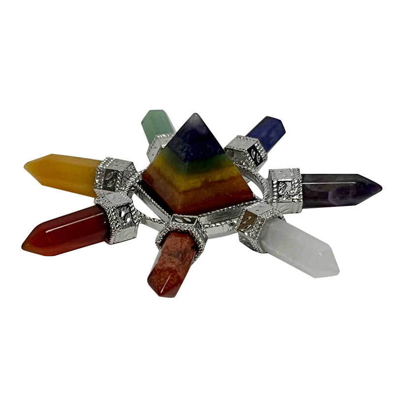 カラフルな六角柱のピラミッドの置物虹の水晶の玉の工芸品は石の工芸のアマゾンを象眼して卸売りします。