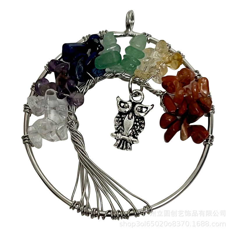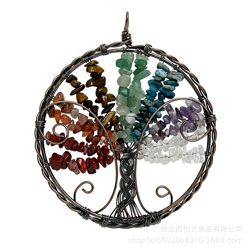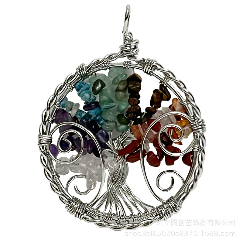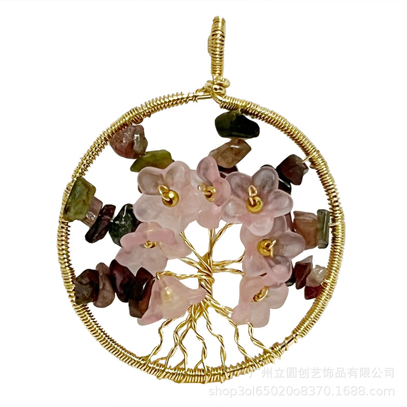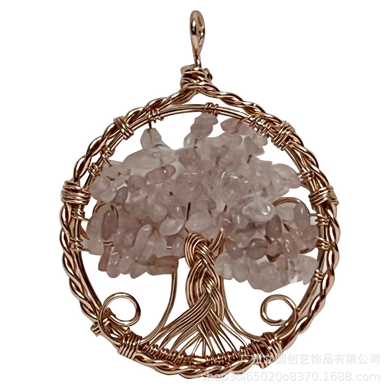 アマゾン速売通新型天然水晶砂利円形生命樹発財樹手作り巻線ペンダント