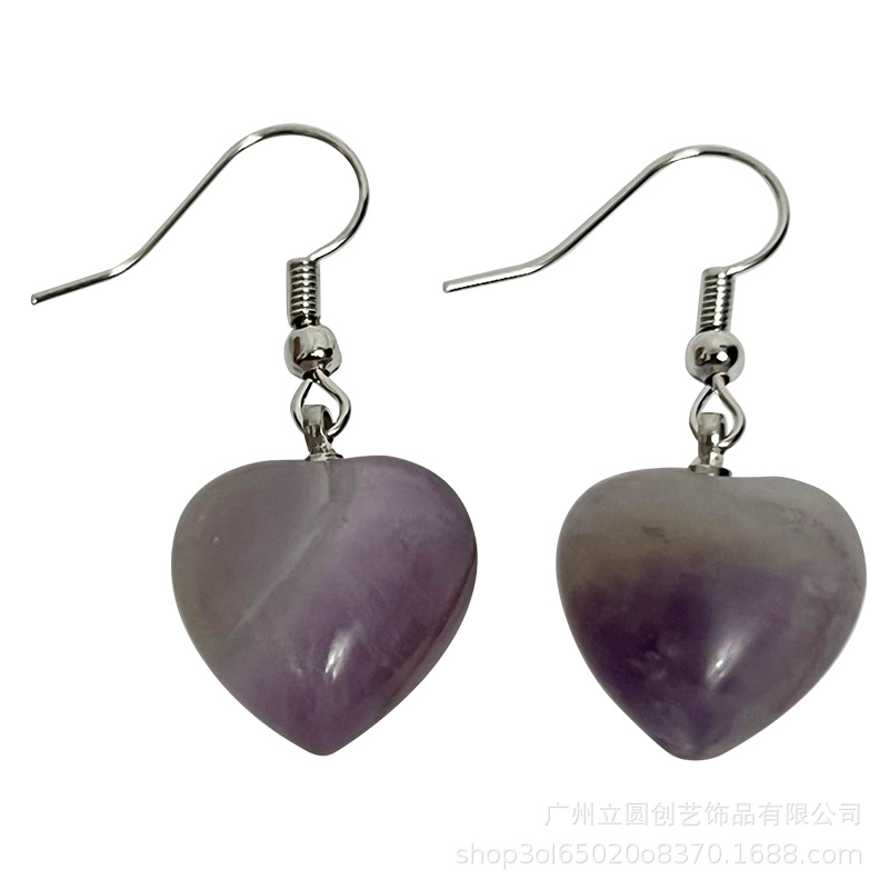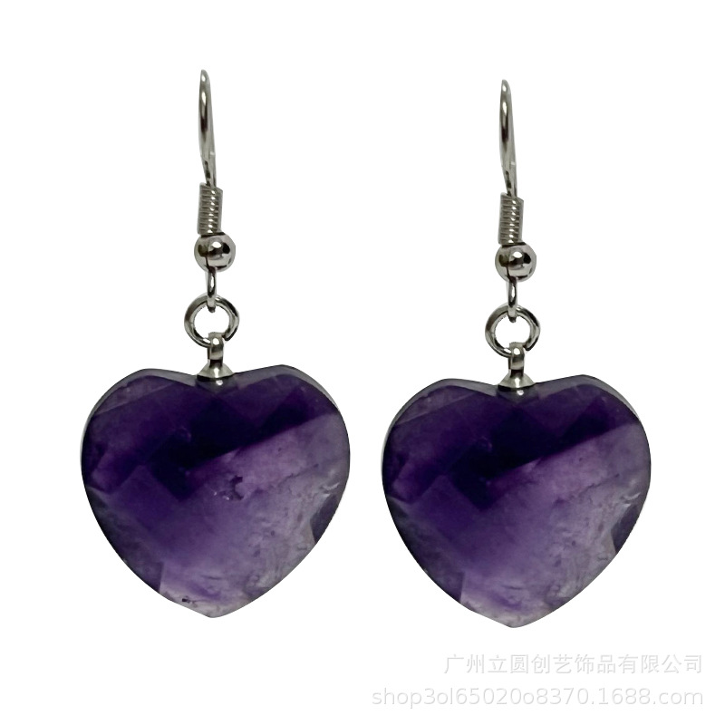 速売通アマゾン天然紫水晶切断面愛耳飾り粉晶桃心耳打ち