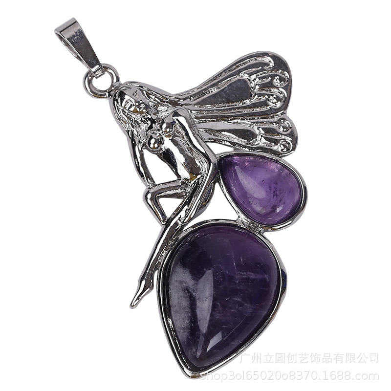 国境を越えた新しいシンプルなファッション天然水晶モザイク天使ペンダントネックレスアクセサリー