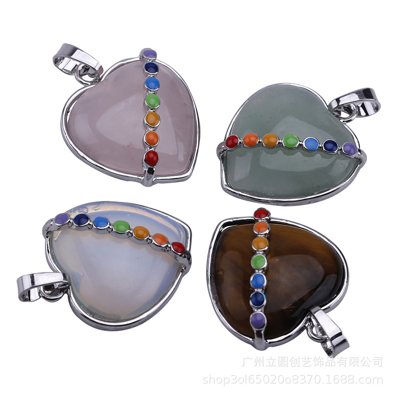 クロスボーダー新型シンプルファッション七色滴油ハート型石ペンダント