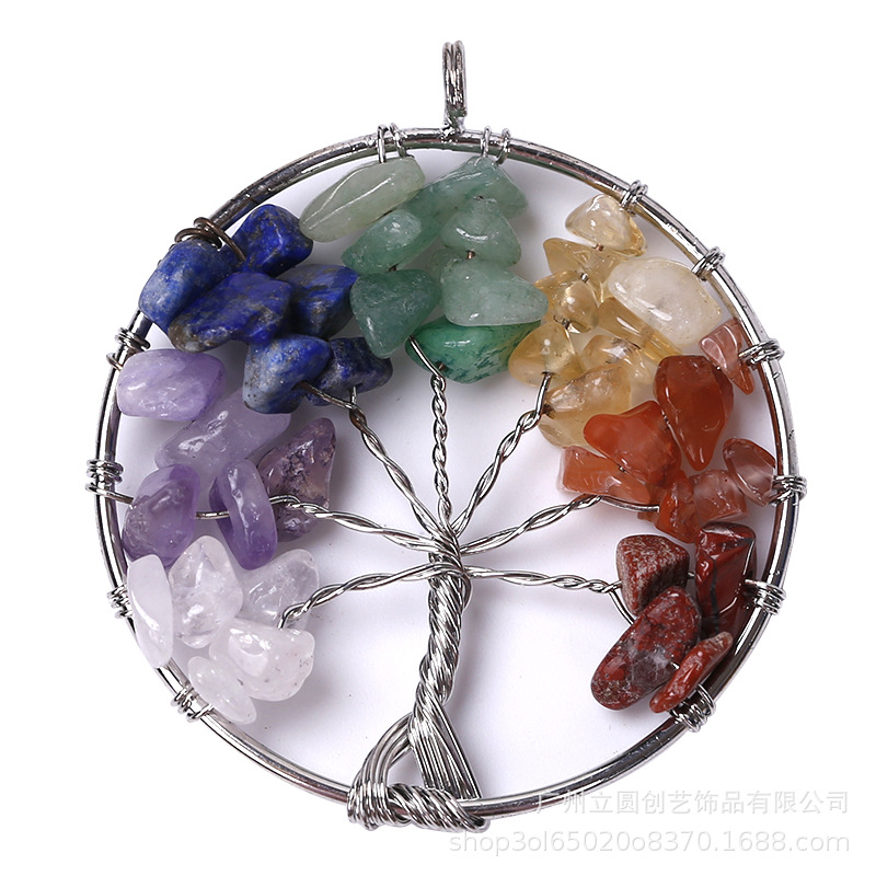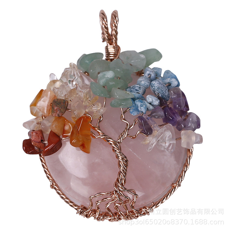 アマゾン速売通七彩生命樹手作り巻線円形粉晶ペンダントネックレスアクセサリー