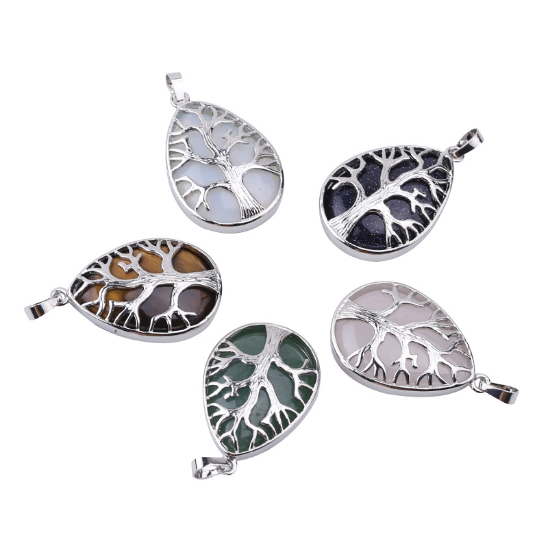 クロスボーダー新型シンプルファッション天然水晶石水滴生命樹ペンダント