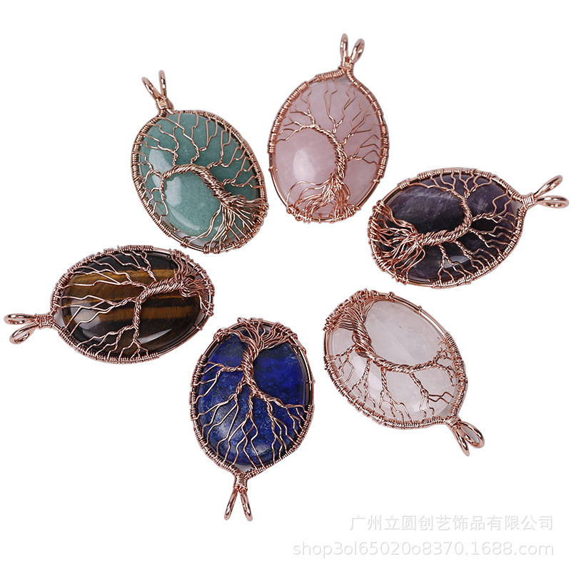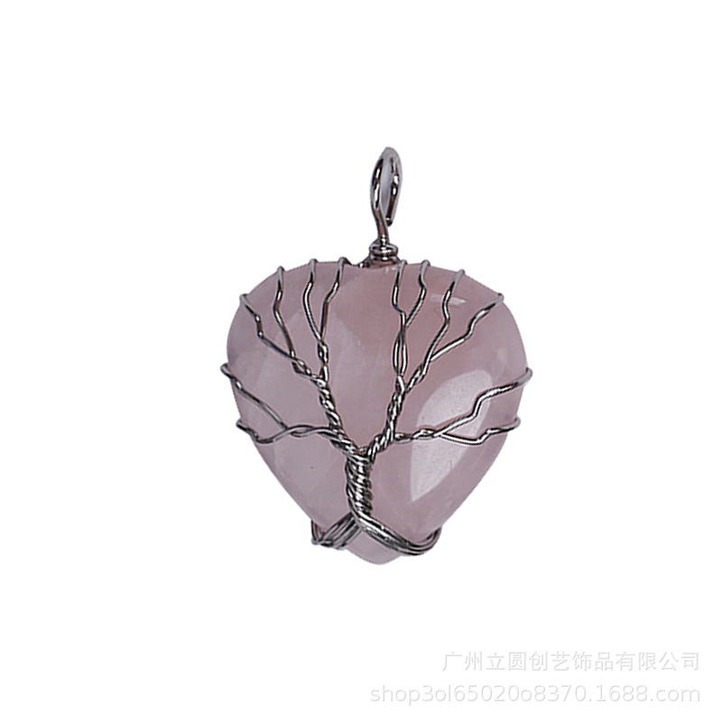 アマゾン速売通天然水晶石粉晶紫晶手作り巻線生命樹ペンダントネックレス