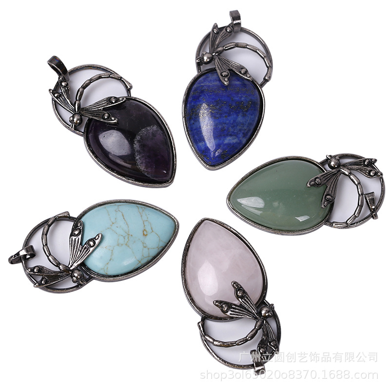 国境を越えた新型天然粉晶紫晶モザイクトンボ金属水滴形状ペンダントネックレスアクセサリー