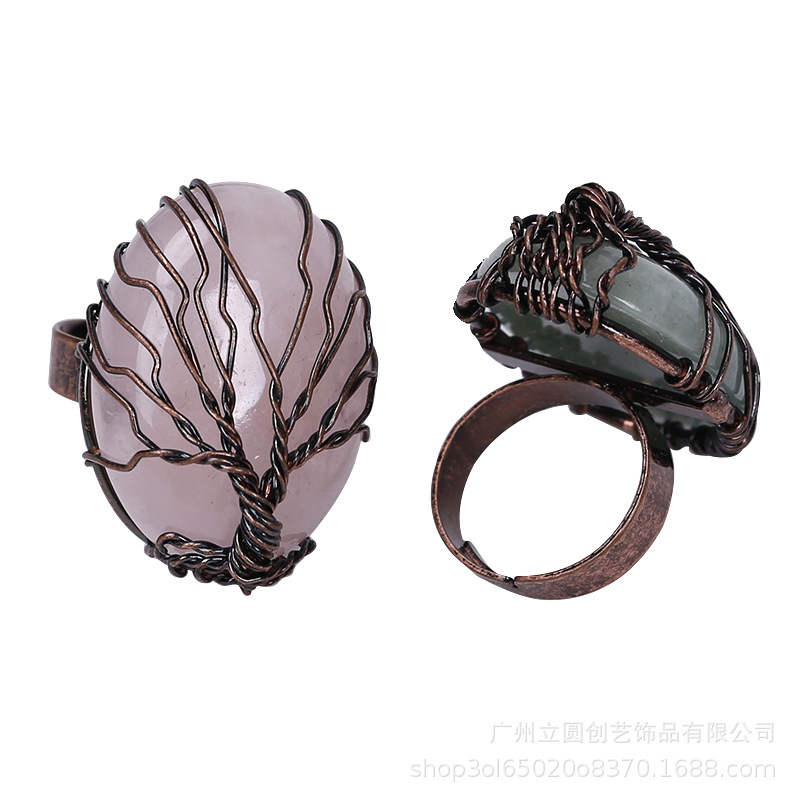 メーカー卸売りファッションシンプル天然粉晶手作り巻線生命樹指輪-JZ002-2