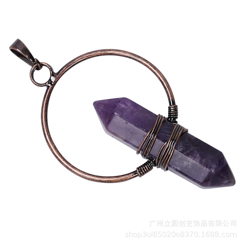 クロスボーダー新型天然水晶粉晶銅巻線手作りペンダントアクセサリー