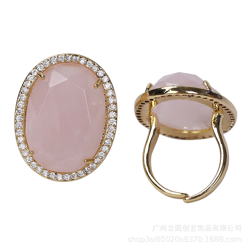 メーカー卸売りファッションシンプルな天然粉晶のダイヤモンドリング-JZ002-1