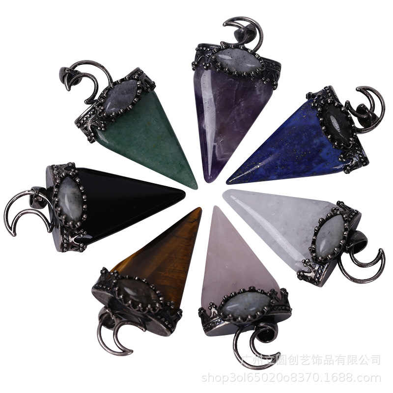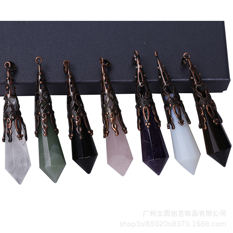 国境を越えた新しい天然水晶石六角柱ピラミッドペンダントネックレス復古アクセサリー-lb 001