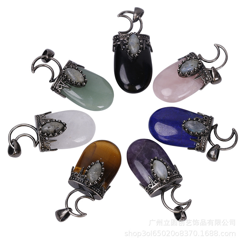国境を越えた新しい天然水晶月モザイク蛍光石楕円形ペンダントネックレス
