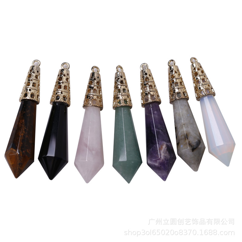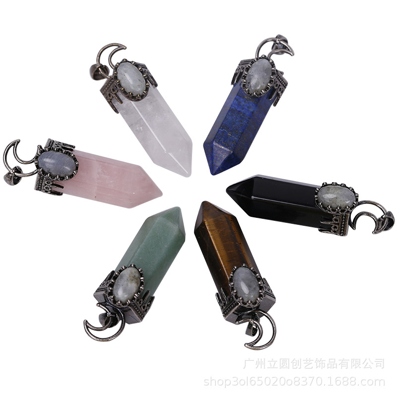 クロスボーダー新型天然水晶石六角柱ピラミッドペンダントネックレス