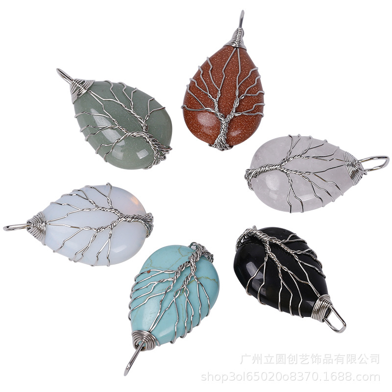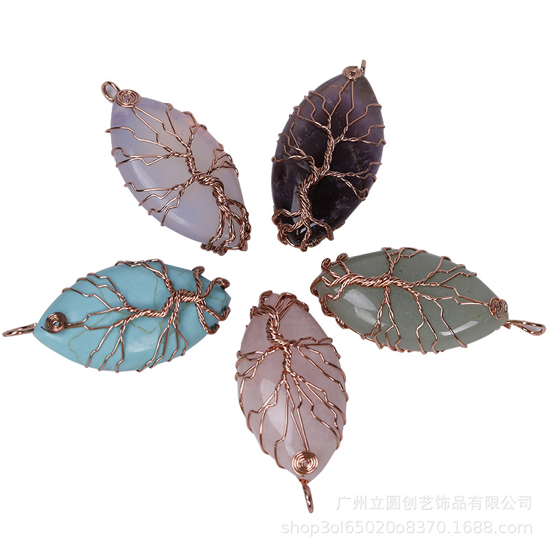 アマゾン速売通天然水晶石粉晶紫晶手作り巻線生命樹ペンダントネックレス