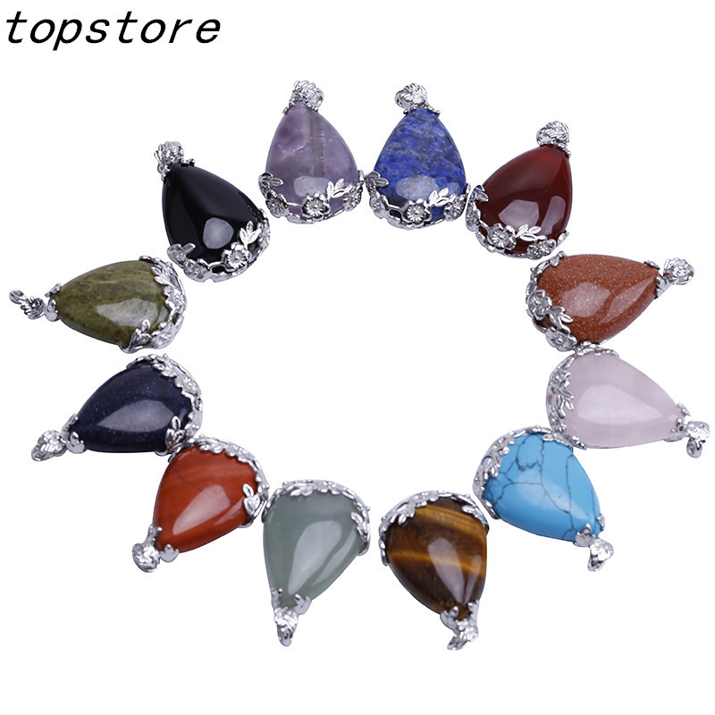 速売通アマゾン爆金45*27mm水滴形金属包辺彫刻雑石ネックレスペンダントとロープ