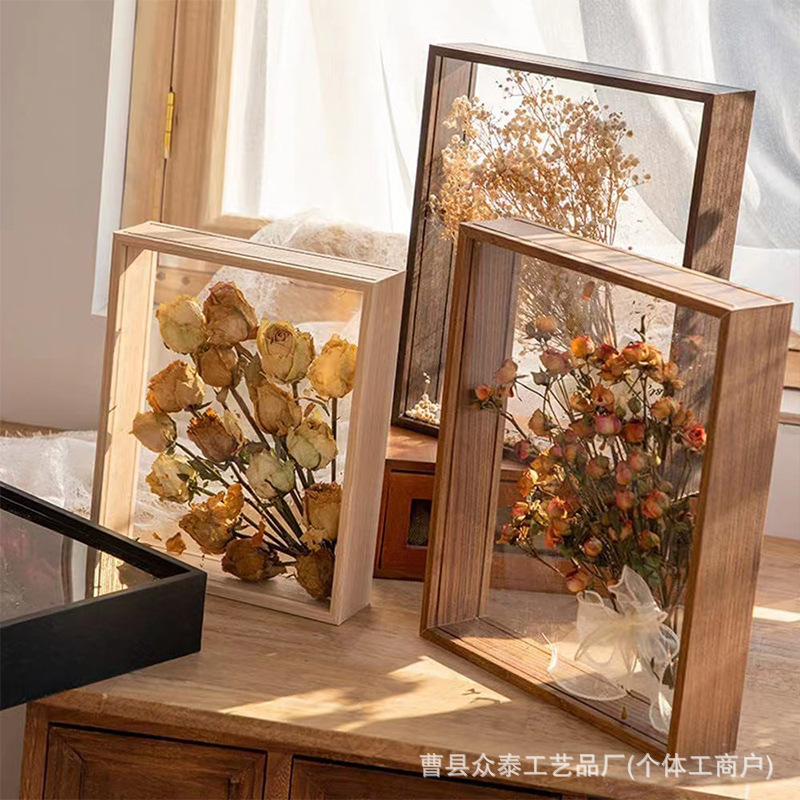 ドライフラワーフォトフレーム両面透明アクリルフォトフレーム木製中空立体diyバラ展示フレーム置物プレゼント