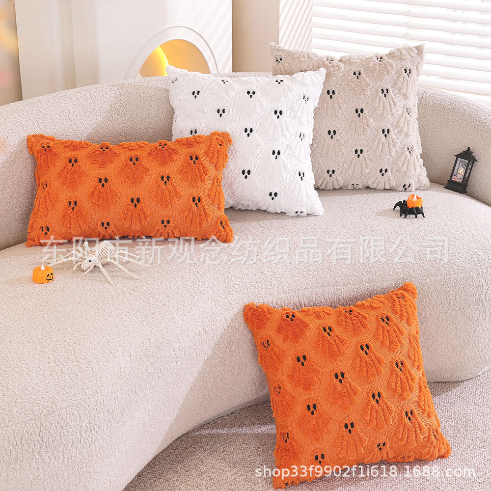 2025 スポットハロウィンシリーズリトルゴーストぬいぐるみ枕カバートランスボーダー推奨パーティー装飾ソファクッションカバー