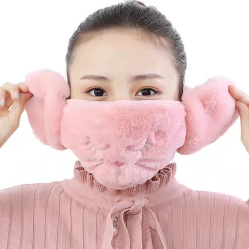 冬の新型猫耳保護二合一マスク兎毛刺繍アニメ保温マスク耳保護マスク卸売り