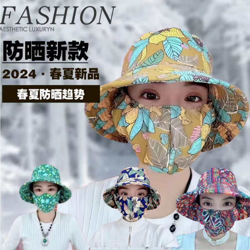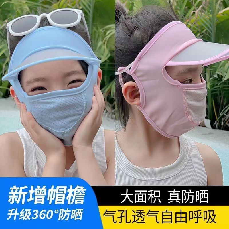 子供用日焼け止めマスク帽子日よけマスク帽子一体全顔夏の薄い通気氷の冷たい顔カバー女性