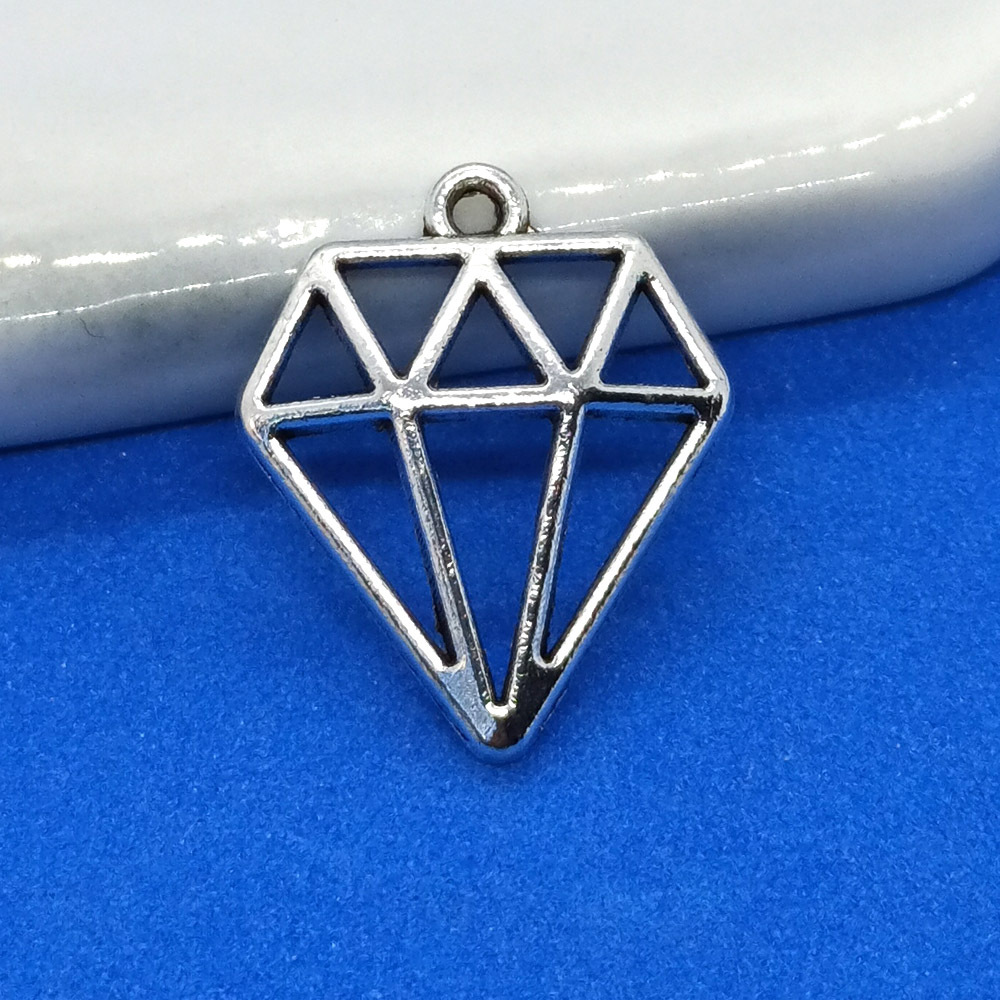 1688工場価格直販復古銀色透かし彫りダイヤモンドペンダント合金diyアクセサリー部品18*15mm