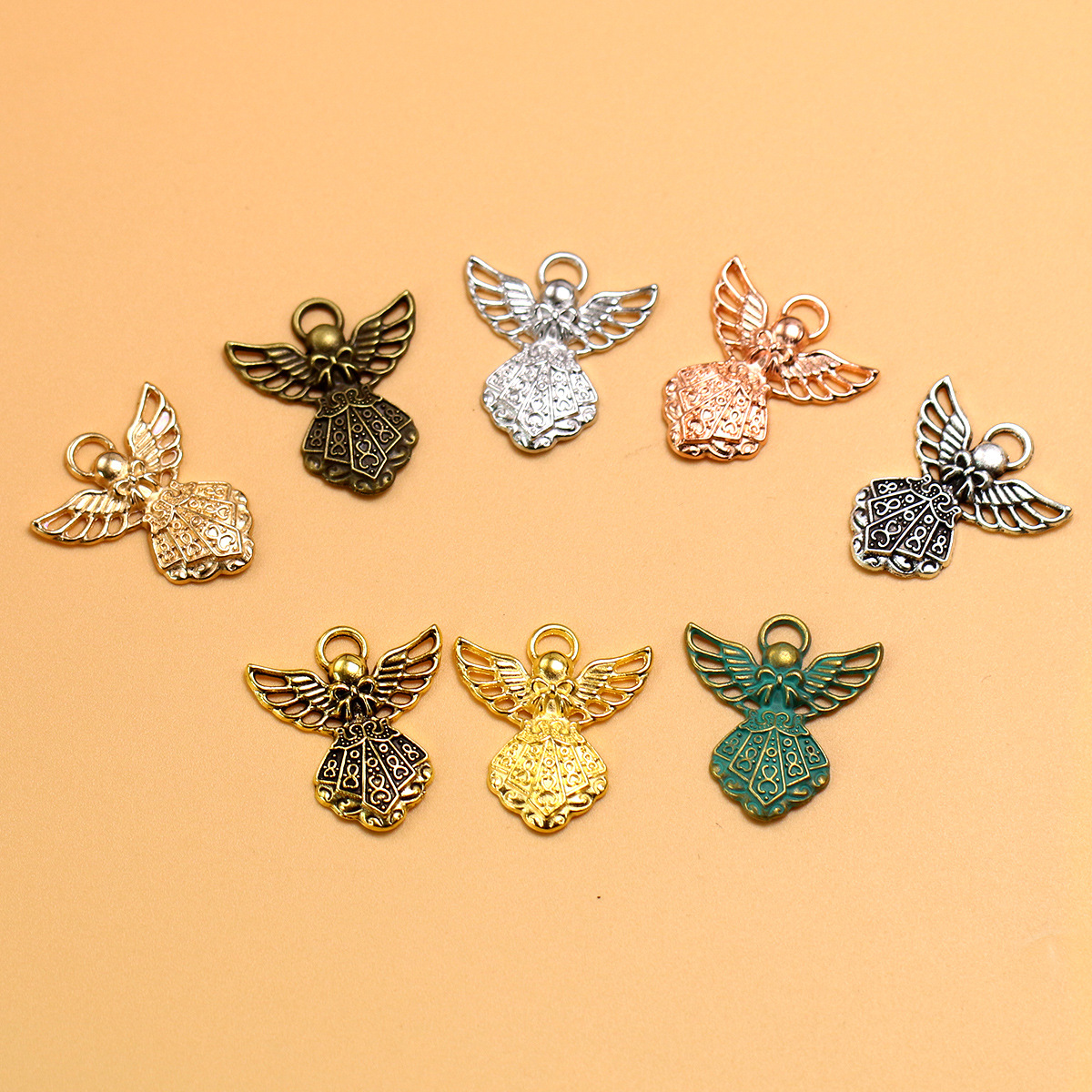 1688マルチカラーガーディアンエンジェルペンダント中空天使の羽ブレスレットネックレスアクセサリー DIY レトロ合金ジュエリーアクセサリー