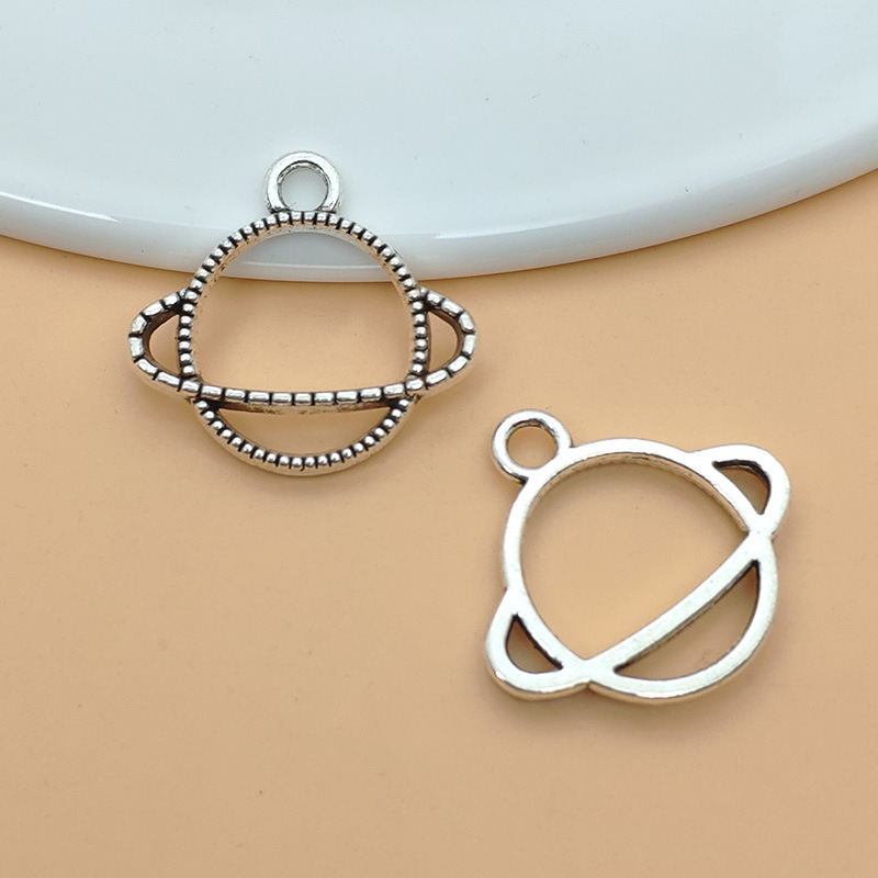 Diy合金アクセサリー宇宙sf銀色の透かし彫り土星ペンダントペンダント22*23mm
