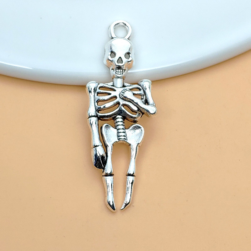 パンクスタイルレトロシルバースカルスケルトンストラップペンダントdiy手作り合金アクセサリーアクセサリー43*16mm