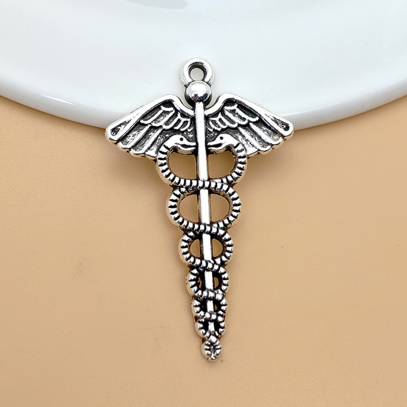 欧米風レトロ銀色翼双蛇権杖ペンダントネックレスdiyアクセサリーアクセサリー49x31mm