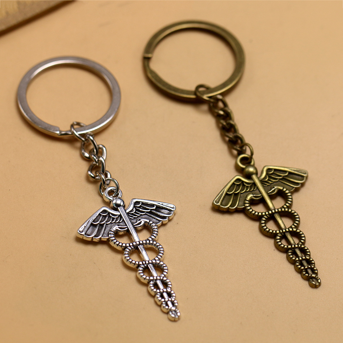 個性創意合金天使翼双蛇権杖医療記号杖ペンダントキーホルダーペンダント