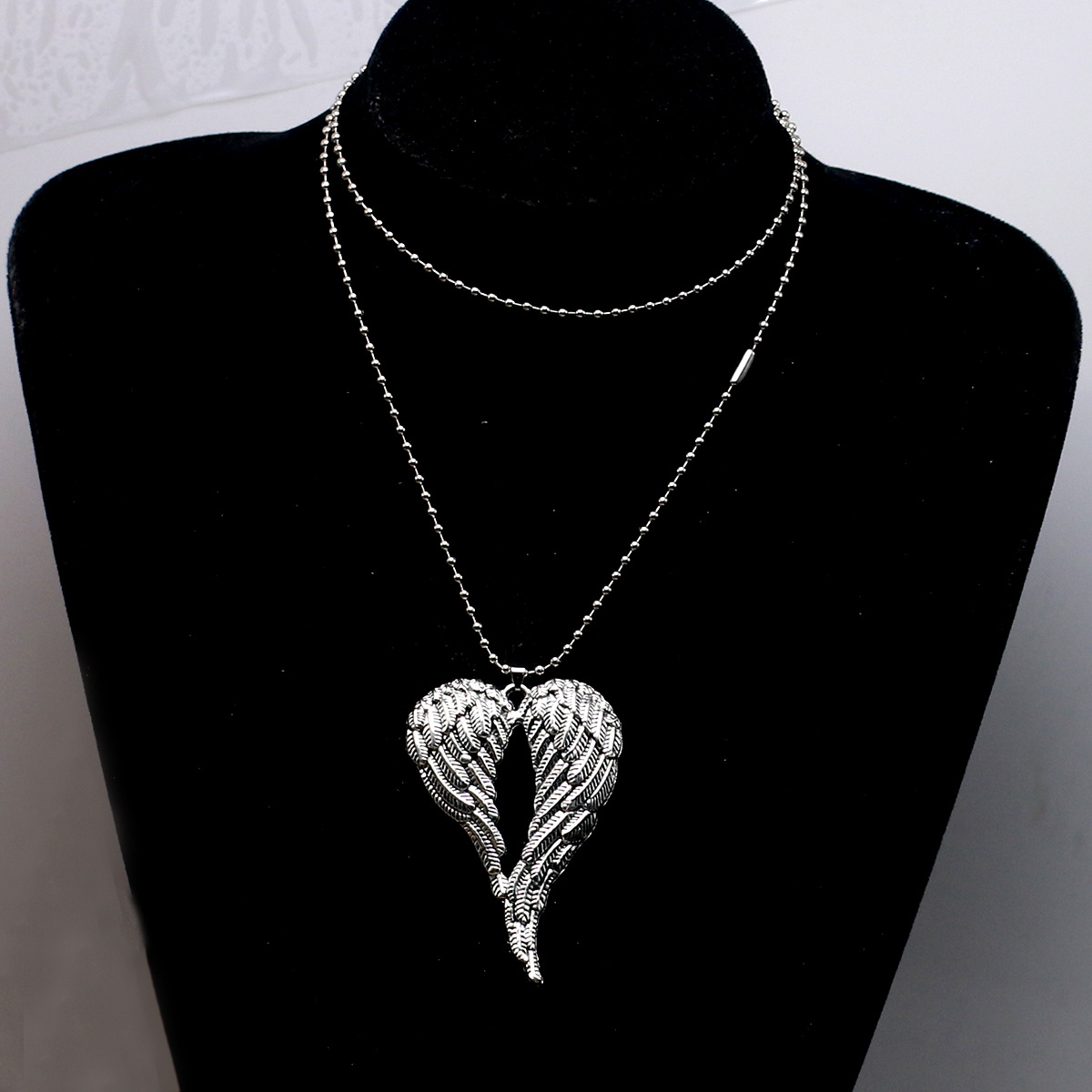 レトロな天使の翼のペンダントのネックレスのシンプルな愛の翼は透かし彫りの桃の心の項装飾diy合金の装飾品を組み合わせます。