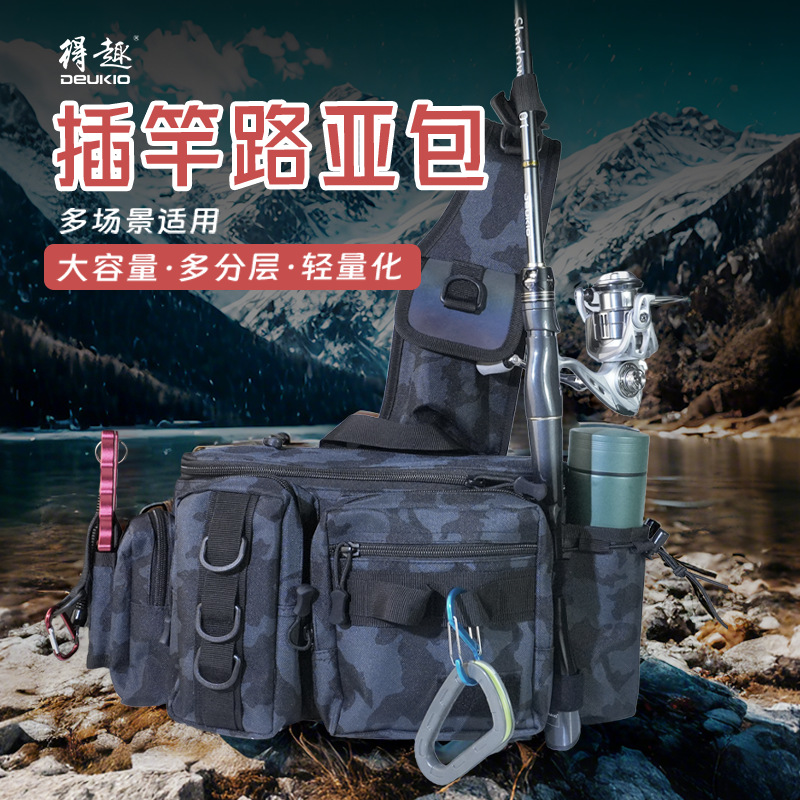 得趣路亜包2025新型多機能釣りカバン挿し棒迷彩アウトドアシングル肩斜めに路亜ウエストバッグにまたがります。