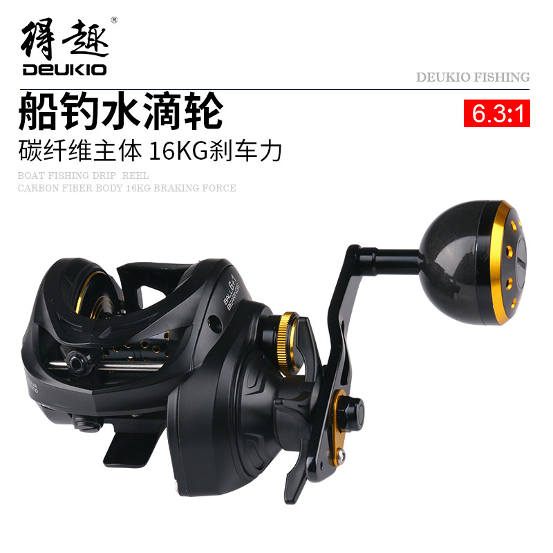 得趣路亜水滴輪黒鉄板船釣り輪炭素繊維本体釣り漁輪雷強漁線輪卸売り