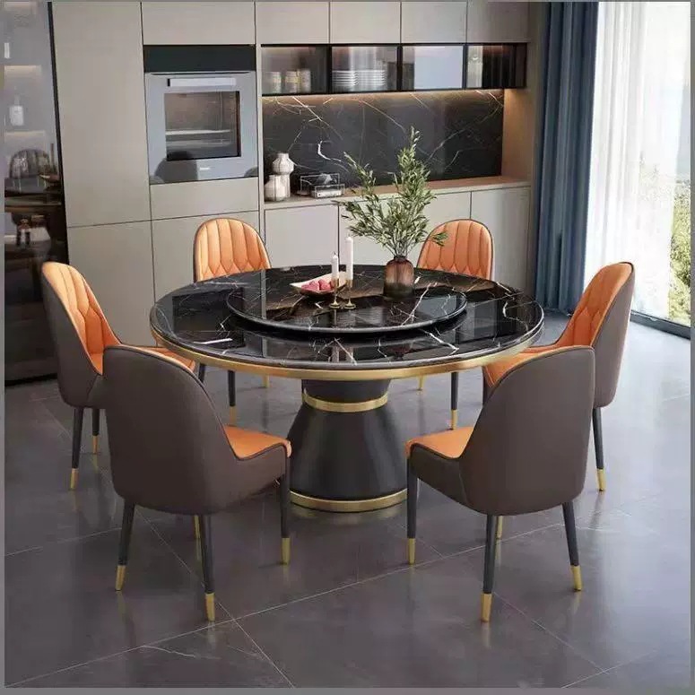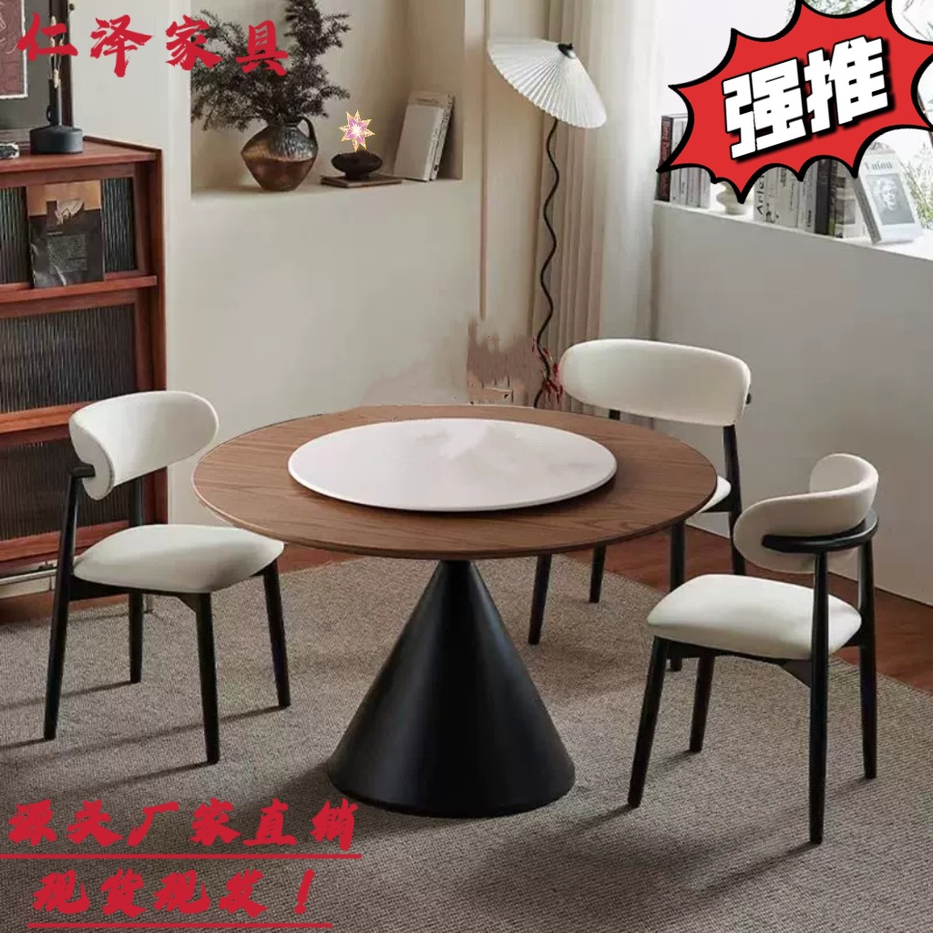 軽くて豪華なスレートダイニングテーブルと椅子の組み合わせ、モダンでシンプルな家庭用の小さなリビングルーム、ターンテーブル付きの丸いインターネット有名人のダイニングテーブル