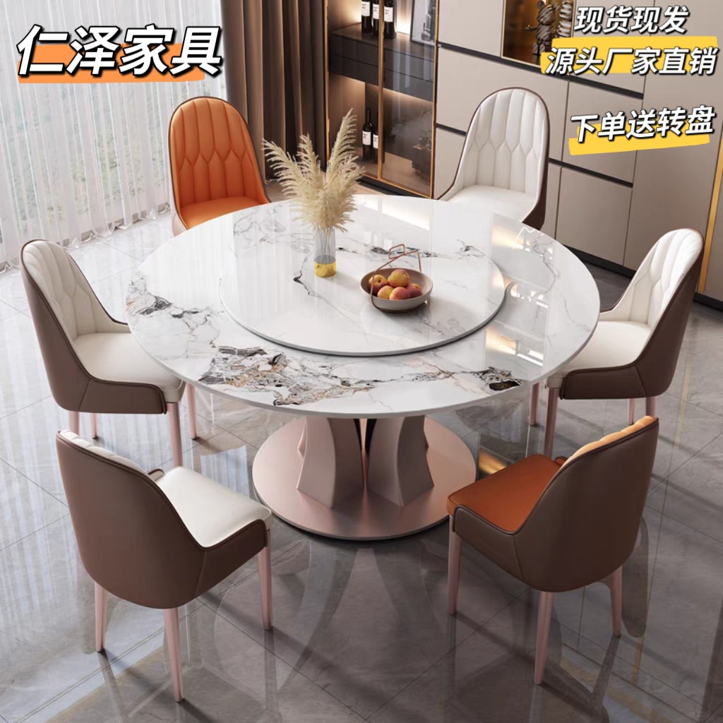 軽豪華岩板食卓と椅子の組み合わせ家庭用小戸型ホテルのトランクの丸いテーブル