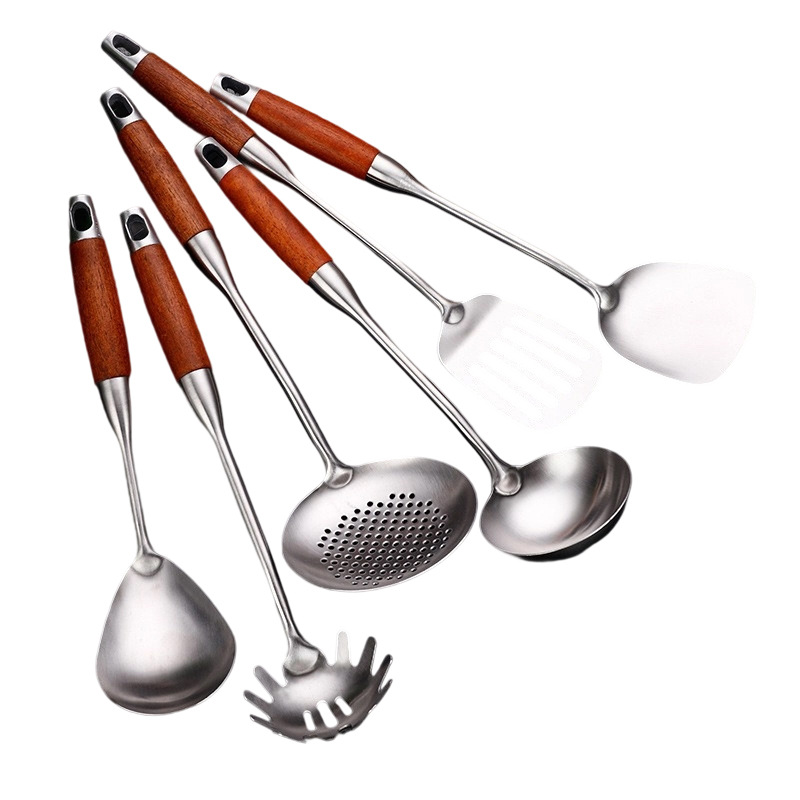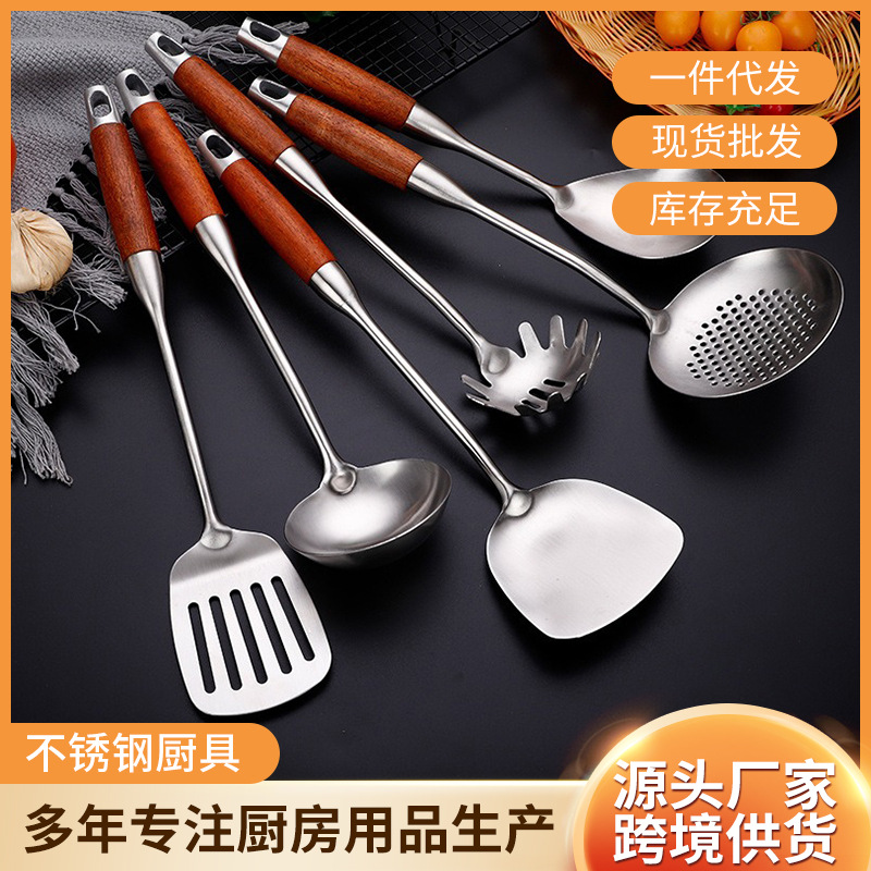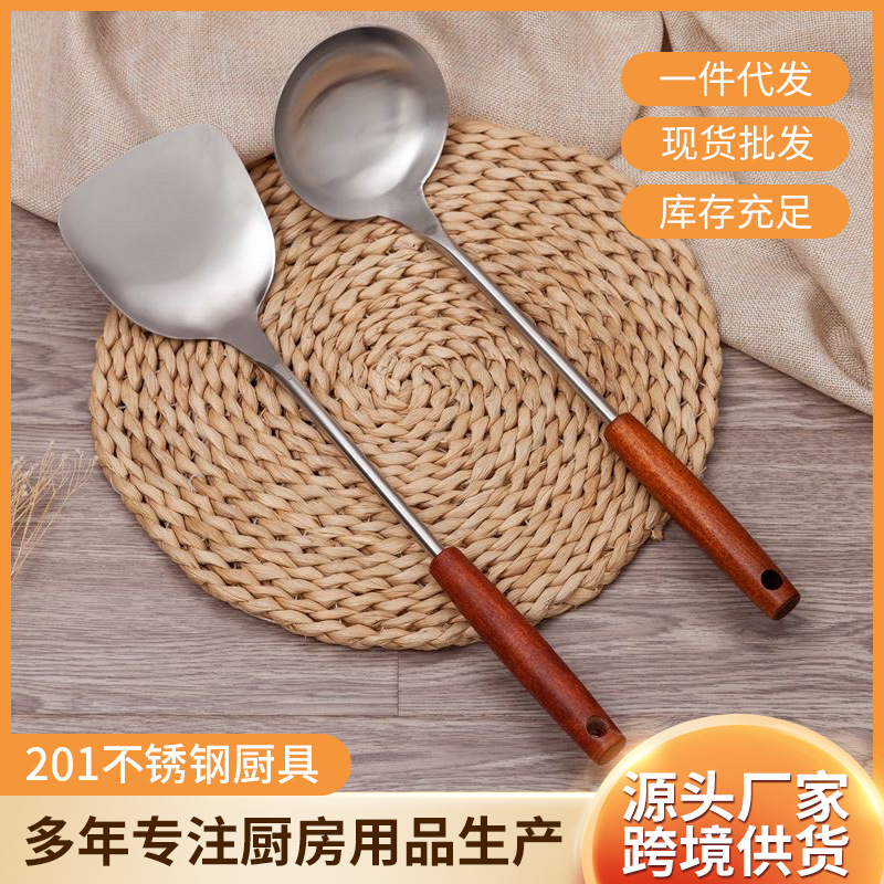 201 ステンレス鋼家庭用調理スパチュラ断熱無垢材ハンドルスパチュラスプーンキッチン用品フルセットキッチン用品のカスタマイズ