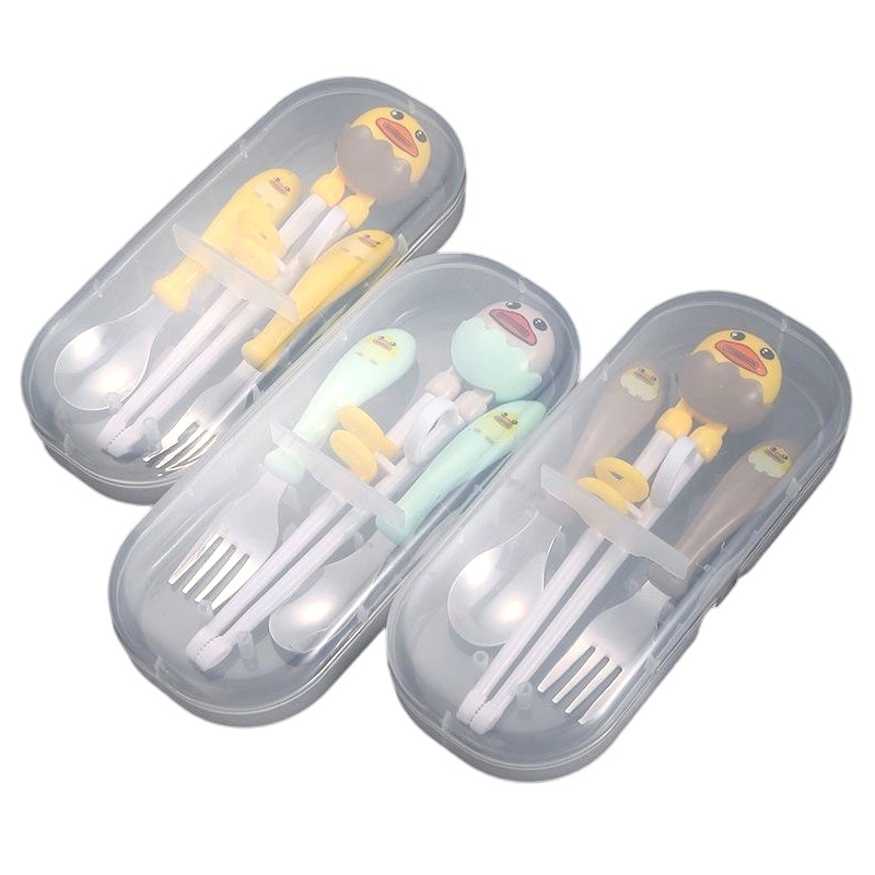 ステンレス鋼の子供用食器セットかわいい漫画学習箸スプーンとフォークポータブルアヒルベビーフードスプーンカスタマイズ
