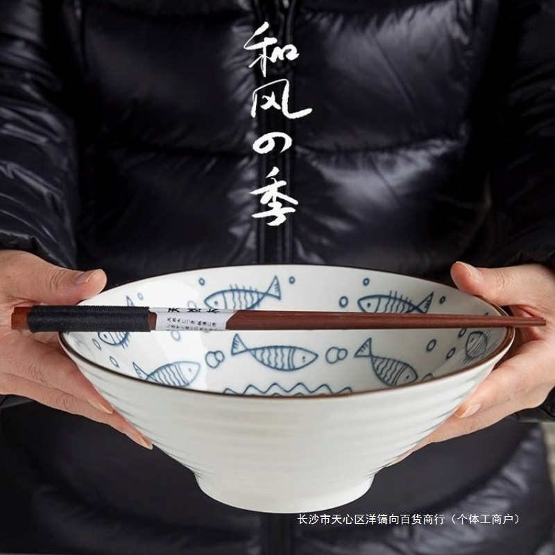 日本式の闘笠碗の家庭用感陶磁器の8インチの食器の釉薬の下で大サイズの顔の碗の2024新型のスープの碗